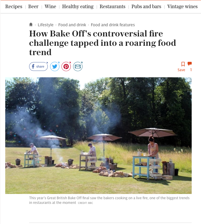 Still, that controversy shouldn't engulf the really-quite-interesting challenge of cooking on a live fire. The technique, which, as Paul Hollywood noted, has "been around for thousands of years”, is a hot trend on the restaurant scene at the moment, with new eateries popping up left, right, and centre offering dishes cooked either over a live flame or, as on Bake Off, on a slate held over an open flame.
