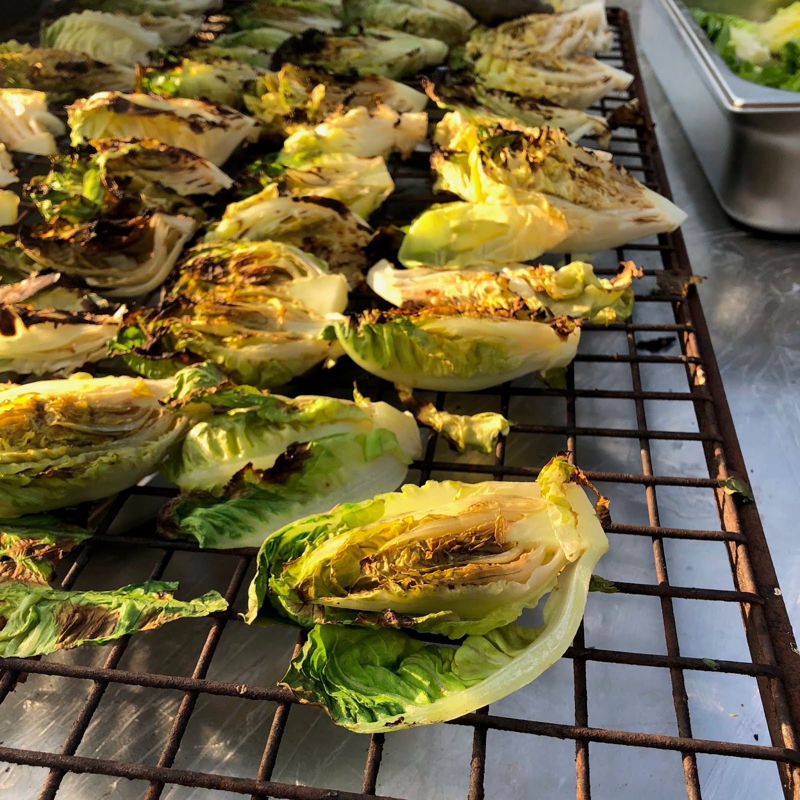 "Vegetables take heat well. You can burn then and they don't stick or create flames as meat does with its fat."